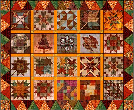 20th January 2002 10th February 2002 3rd March 2002 24th March 2002 14th April 2002 5th May 2002 26th May 2002 16th June 2002 7th July 2002 28th July 2002 8th August 2002 8th September 2002 29th September 2002 20th October 2002 10th November 2002 1st December 2002 12th January 2003 2nd February 2003 23rd February 2003 | Jane N Jane N wasn't picky about the type of block, as long as it was made with autumnal colours, and no white. |