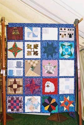 20th January 2002 10th February 2002 3rd March 2002 24th March 2002 14th April 2002 5th May 2002 26th May 2002 16th June 2002 7th July 2002 28th July 2002 8th August 2002 8th September 2002 29th September 2002 20th October 2002 10th November 2002 1st December 2002 12th January 2003 2nd February 2003 23rd February 2003 | Kay Kay is looking for a Christmas block, either applique or pieced, but using mainly blue and silver. Kay made a copy of the blocks she made for all the other members, and used them to back her own quilt. |